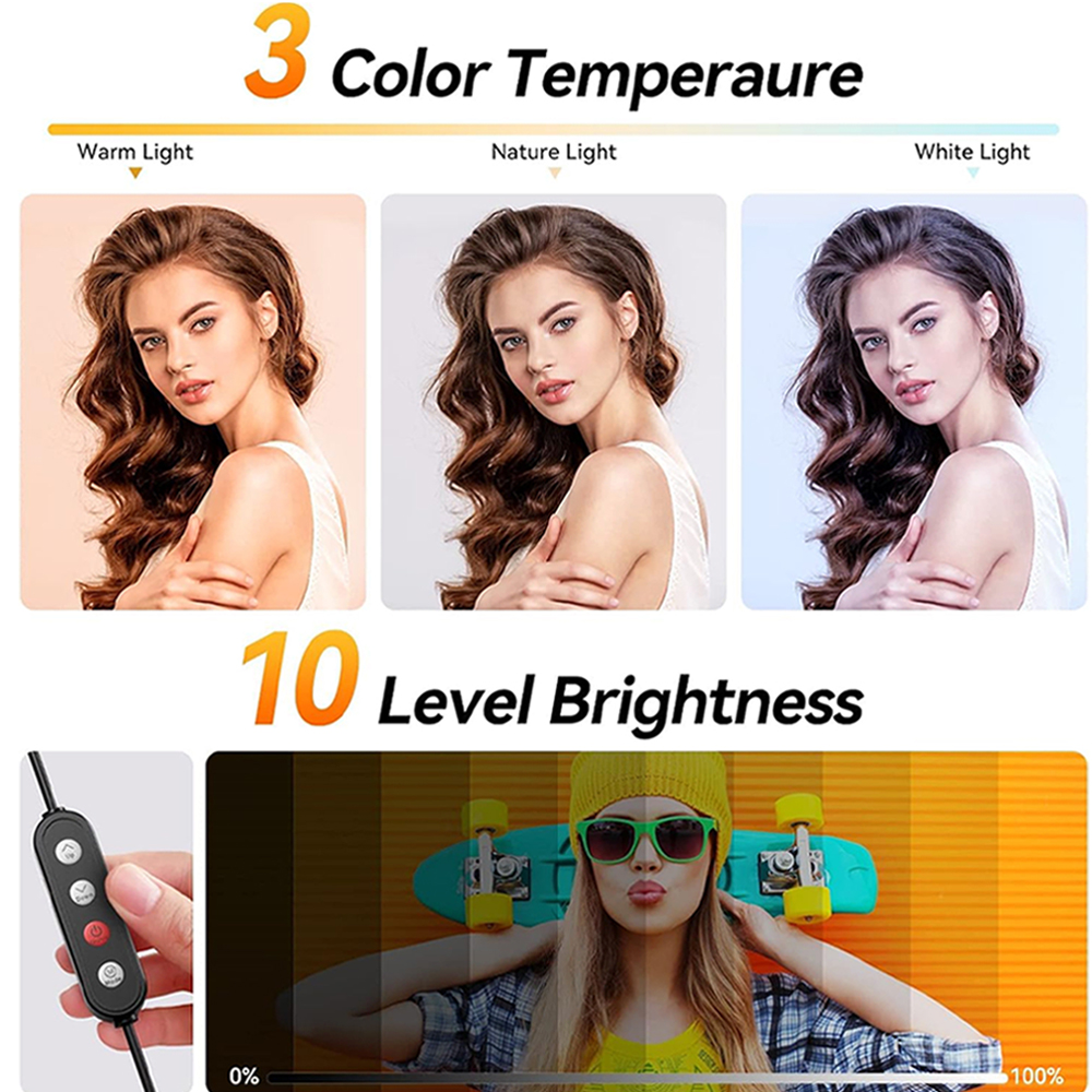 - 【Dimmable Light & Arched Lampshade】: 12″ Ring Light provides 3-color lighting modes, Warm Light, Cool White, Day Light, and 10-level brightness from 10%-100%, it is the perfect extra light to take away all the unflattering shadows. The arched lampshade design makes the light more even and balanced, reduces the stimulation of the light and protects the eyes.