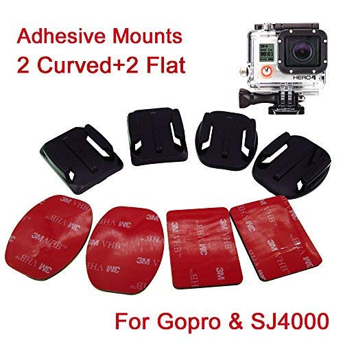 3M Adhesive Pads 2 x Flat and Curved Mounts Compatible with GoPro Hero 13 12 11 10 9 8 7 6 5 4 3+ 3 SJCAM YI Noise Play Action Cameras