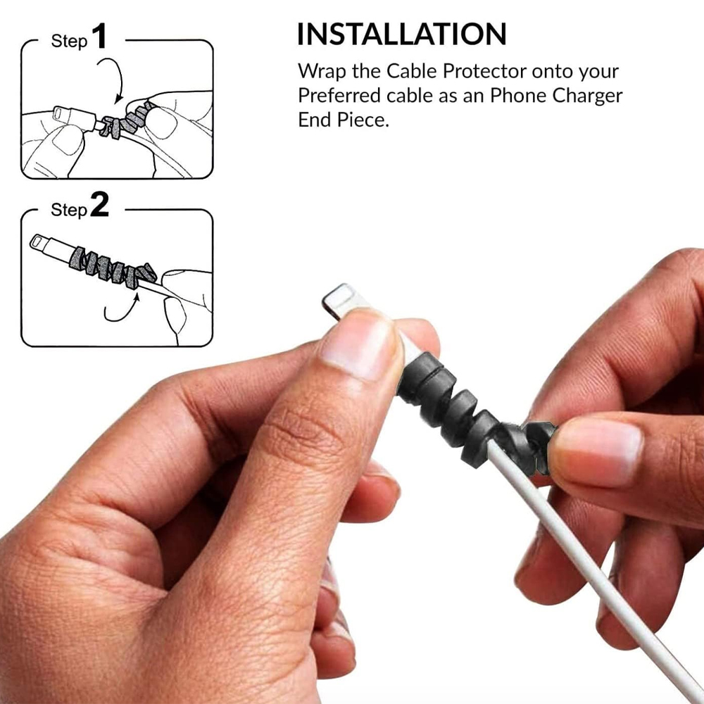 - Wrap the cable protector onto Your preferred cable as an iphone charger end piece. SPIRAL TUBE CHARGING CABLE PROTECTOR will wrap around any wire just like a protective sleeve would but with more mobility.