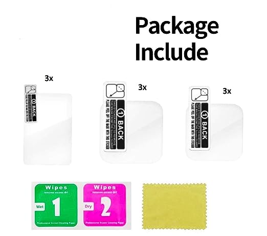 - Package Included: 3 x 9H Screen Protection Film, 3 x 9H Lens Protection Film, 3 x 9H Display HD Protective Film, 2 x Wet Wipe, 2 x Dry Wipe 1 x Cloth.