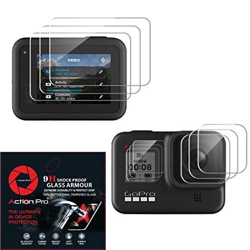 9H Front & Back Screen Protector Compatible with GoPro Hero 8, HD Clear, Anti-Scratch, 9H Hardness High Definition (Pack of 9)