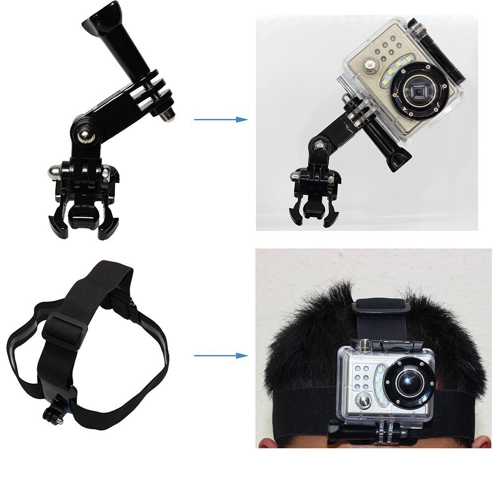 • Headband & J-hook Buckle Mount – Fully adjustable to fit all sizes, the head strap can be strapped to a helmet or directly on your head in a headlamp-like position; quick-release design vertical surface J-hook buckle mounts attach your GoPro camera to a chest harness or helmet mount.