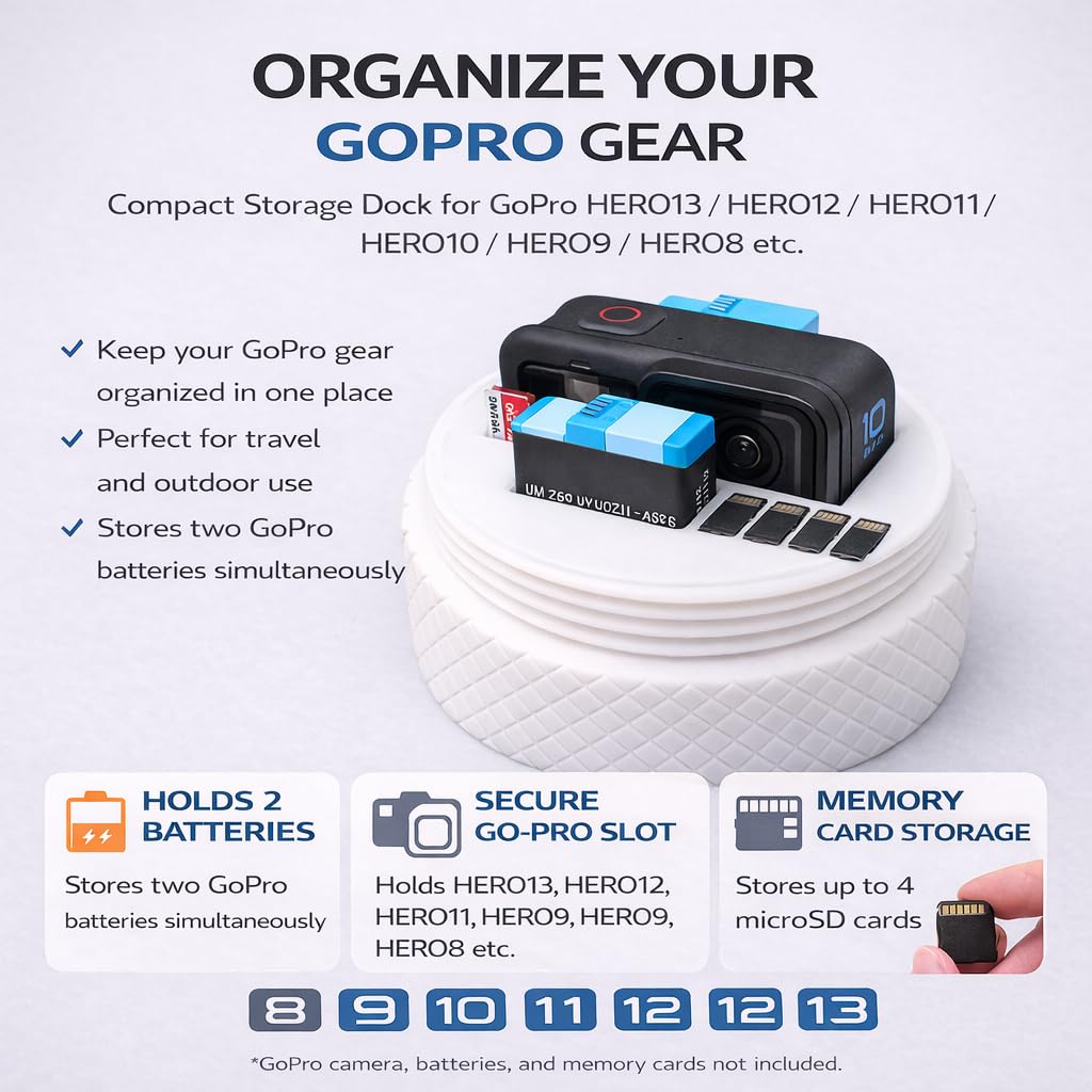 - Perfect Fit for GoPro Hero 13 Black Specially designed storage case compatible with GoPro Hero 13 Black camera and batteries, keeping everything secure and organized.