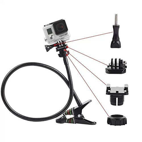 Be the first to review “Adjustable 27″ Gooseneck Flex Clip Clamp Tripod Mount Compatible with GoPro Hero 13 12 11 10 9 8 7 6 5 4 3+ 3 Insta-360 SJCAM YI 4K Eken and Other Action Cameras”