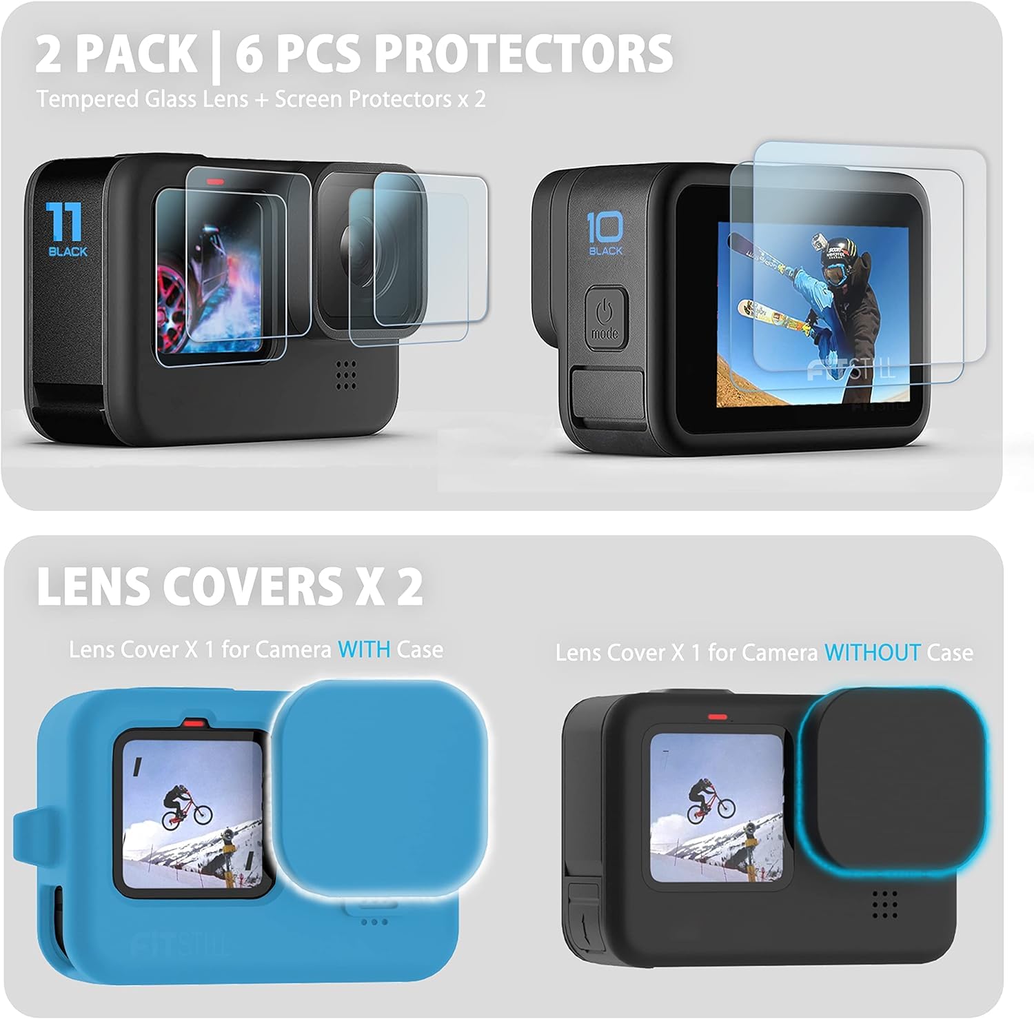 - 2 Pack screen protector kit safeguard the lens and touch screen on your HERO9/10/11/12/13 from scuffs and scratches when the going gets tough. Made from tempered glass, these protectors feature anti-fingerprint and anti-reflective coatings so your footage looks its best.