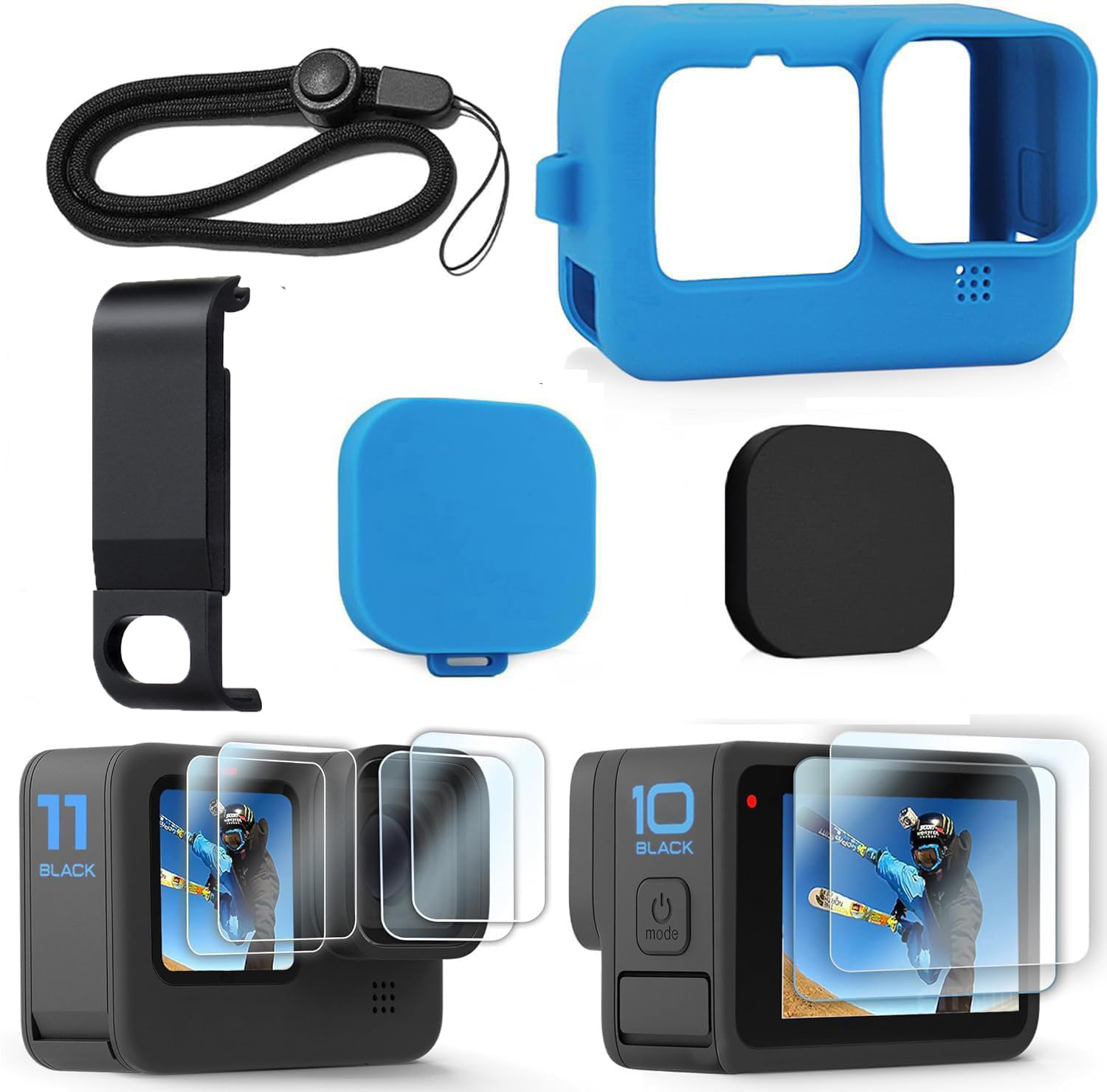 Accessories Kit Blue (Silicone Case, Battery Side Cover, Screen Protector, Lanyard) Compatlble with GoPro 13/12/11/10/9 Action Camera