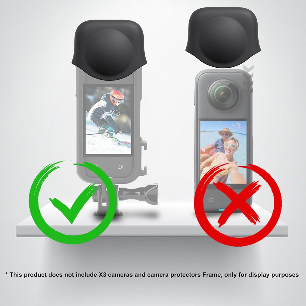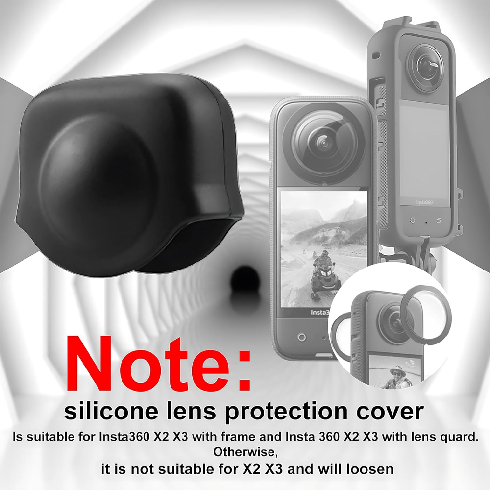 - Note: This silicone lens protection cover is suitable for Insta360 X2 X3 with frame and Insta 360 X2 X3 with lens guard. Otherwise, it is not suitable for X2 X3 and will loosen.