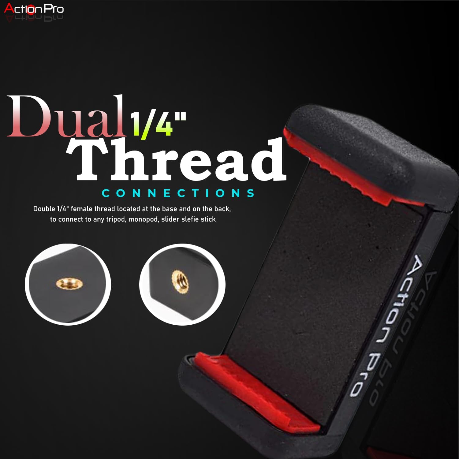 - Package Include : 2 x Action Pro Phone Holder, 2 x Action Pro 1/4 Tripod Mount Adapter, 2 x Action Pro Screw