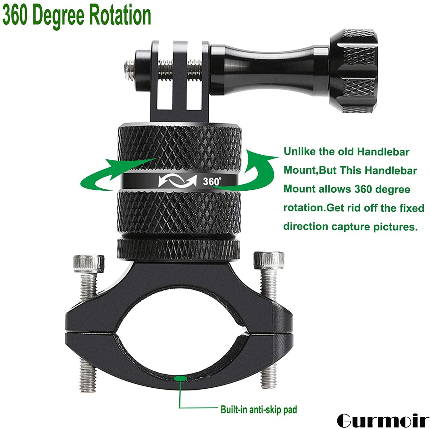 - 360 Degree Rotation—Capture every meaningful moment Unlike the old Handlebar Mount, But This Handlebar Mount allows 360 degree rotation. Get rid off the fixed direction capture pictures.. easy to rotate, Meet your all-around shooting requirement.