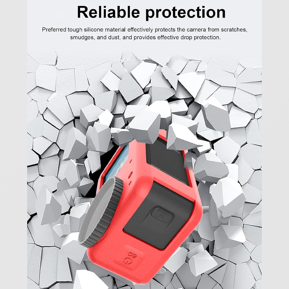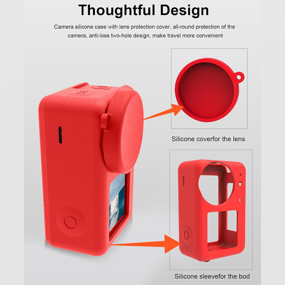 Silicone Protective Case & Lens Cap Compatible with Osmo Action-3 Red (Pack of 1)