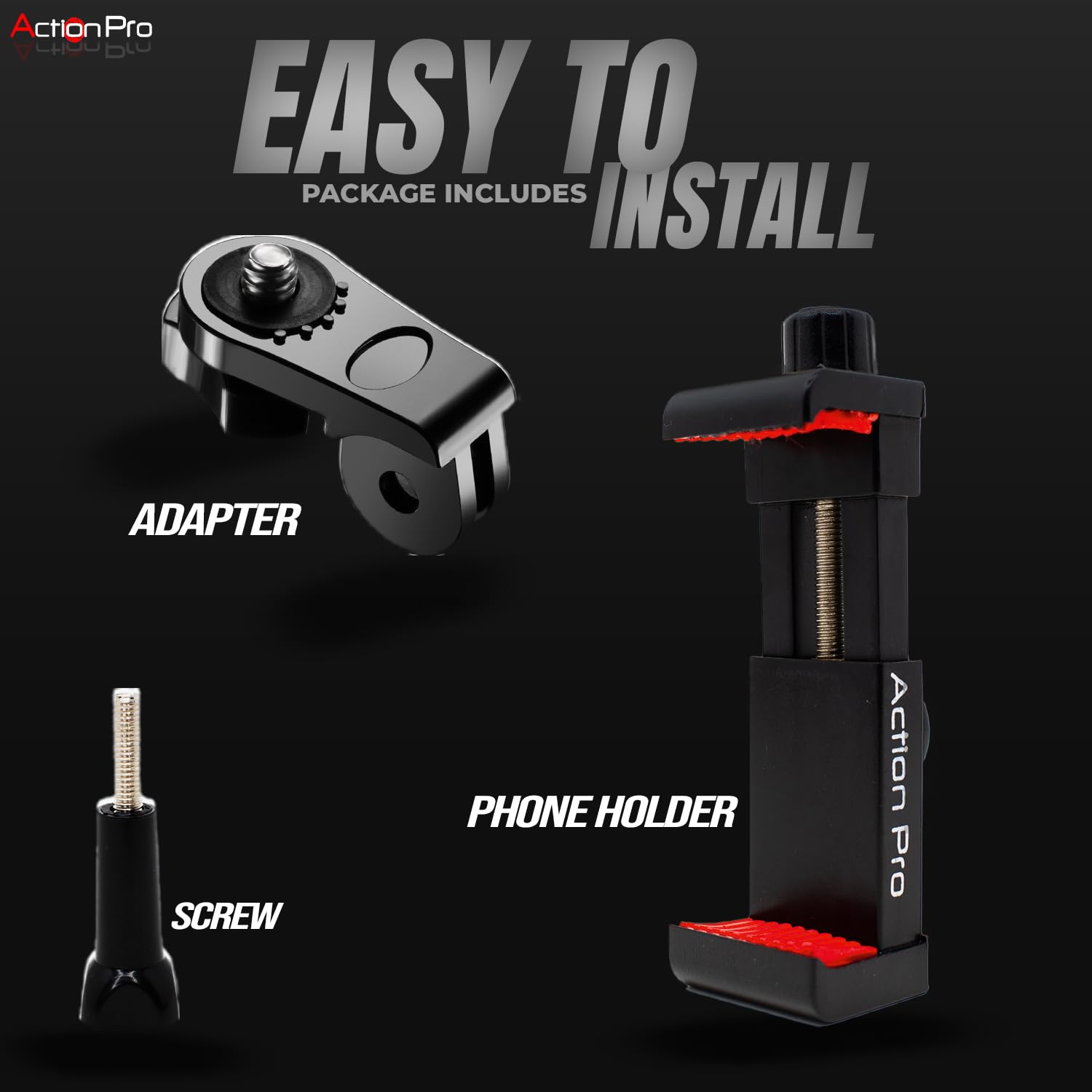 - Package Include : 1 x Action Pro Tripod Phone Holder, 1 x Tripod Adapter, 1 x 3M Curve Adhesive Sticky Mount, 1 x J Hook, 1 x Screw.