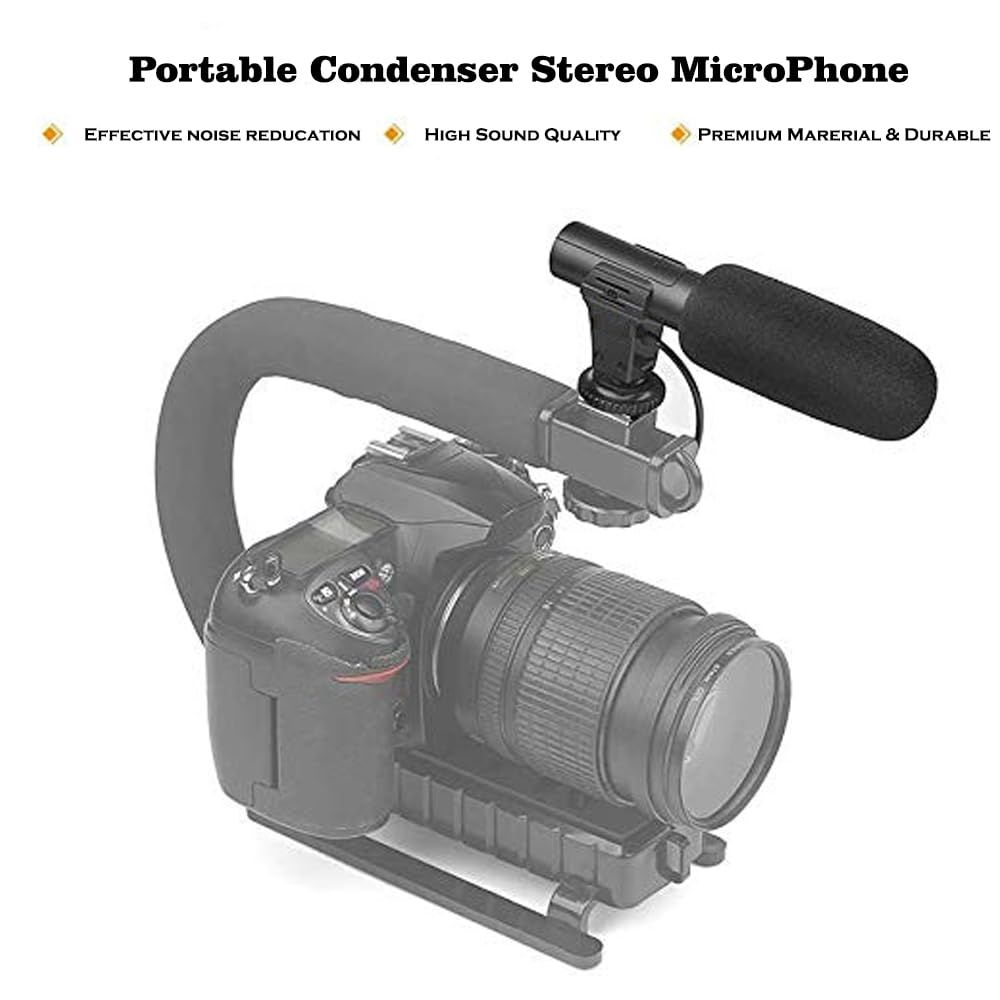 Portable Condenser Stereo Microphone Mic with 3.5mm Jack Compatible with Canon, Sony, Nikon Camera Camcorder