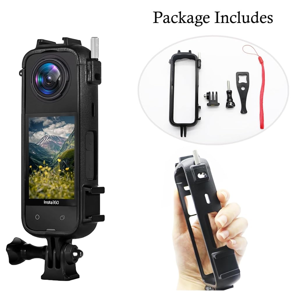 Protective Frame Skeleton Case Camera Mount with 1/4 Thread Adapter Compatible With Insta360 x4 Action Camera (Black)