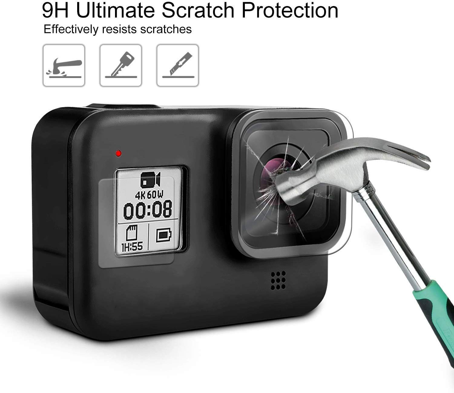 9H Screen Protector LCD Lens Protector Compatible with GoPro Hero 8 (Pack of 3)
