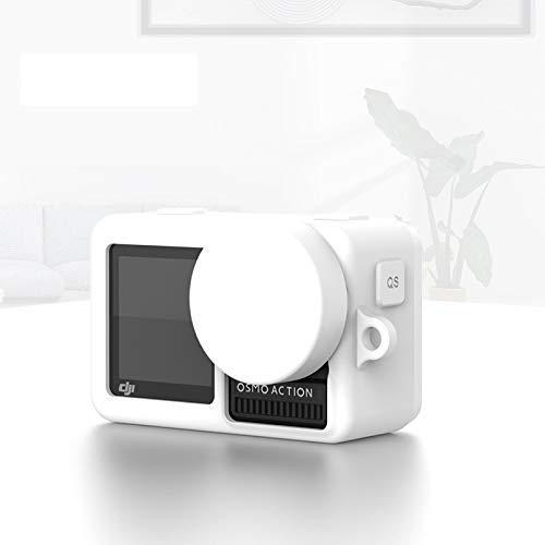 Silicone Rubber Case + Lens Protective Cap Cover Compatible with DJI OSMO Action Sports Camera (White)