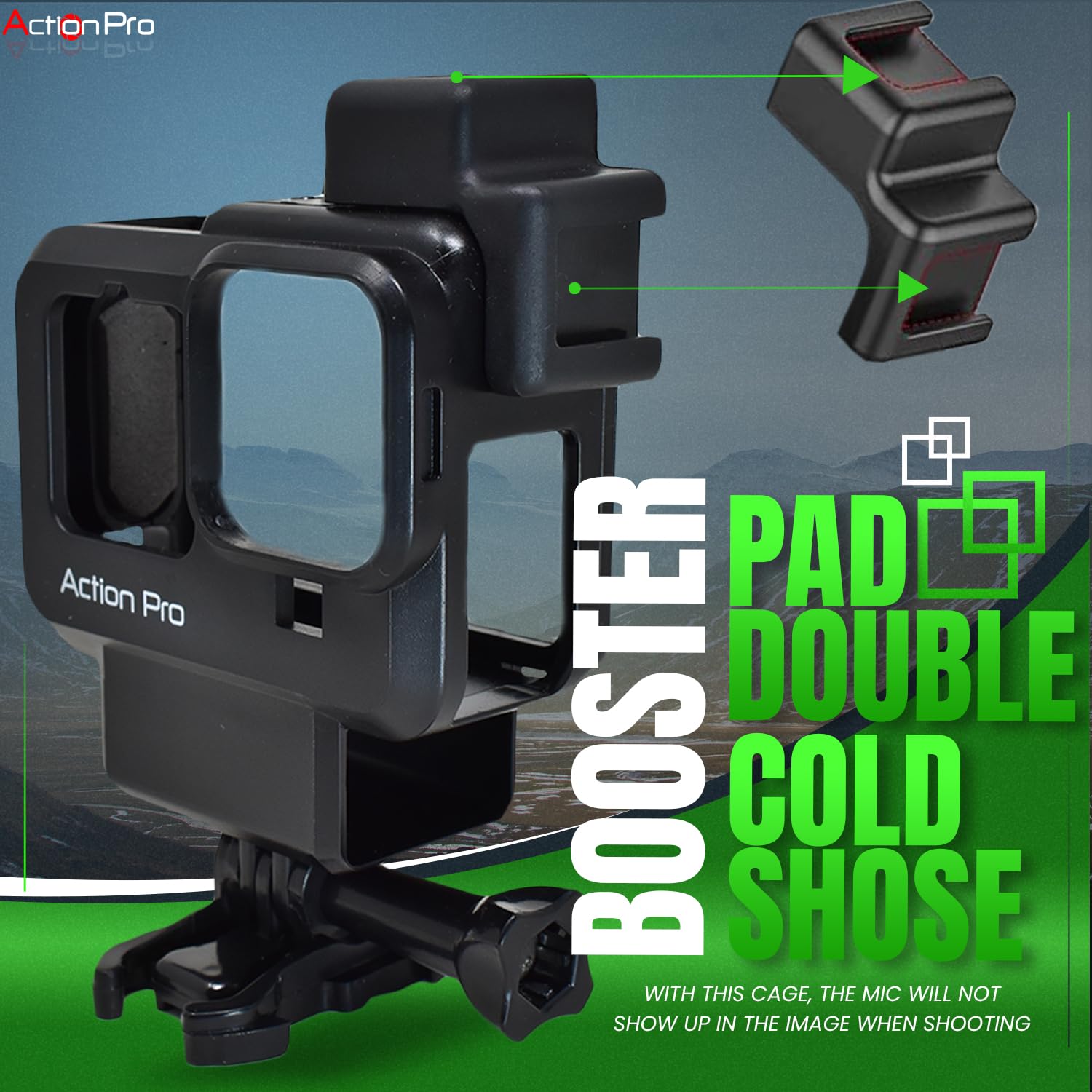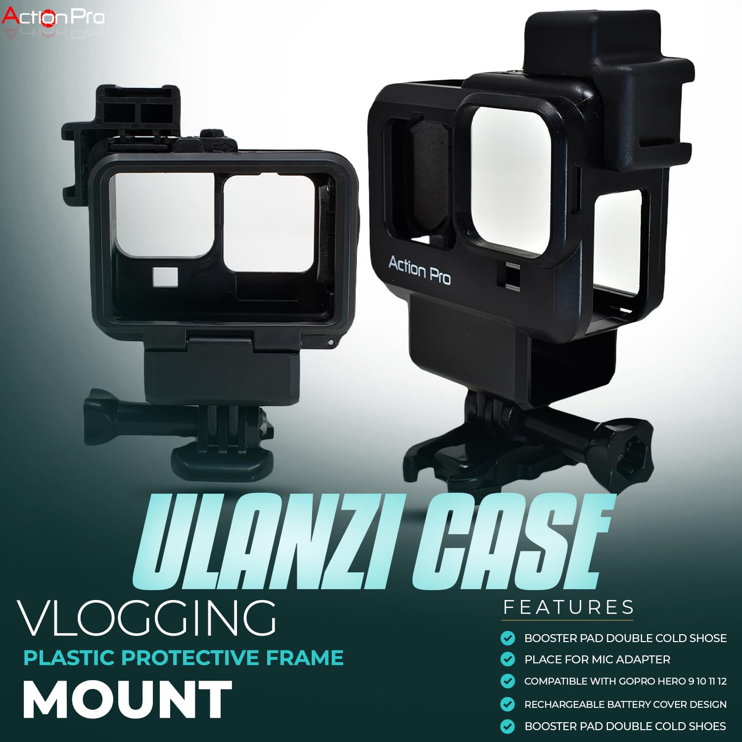 Made in India Vlogging Case Compatible with GoPro Hero-13/12/11/10/9 Plastic Protective Frame Mount with Dual Cold Shoe Mount Ring with Basic Buckle Mount, Thumb Screw (6 Month Warrenty)