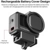 - Rechargeable Battery Cover Design–Reserve a charging port that not only can replace the battery at any time but also can charge Hero 9/10/11/12 or connect an external microphone. Note: The original battery cover needs to be taken out before use.