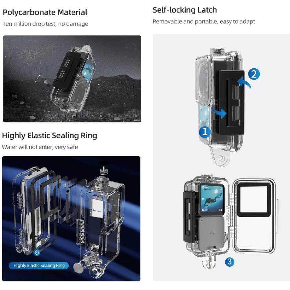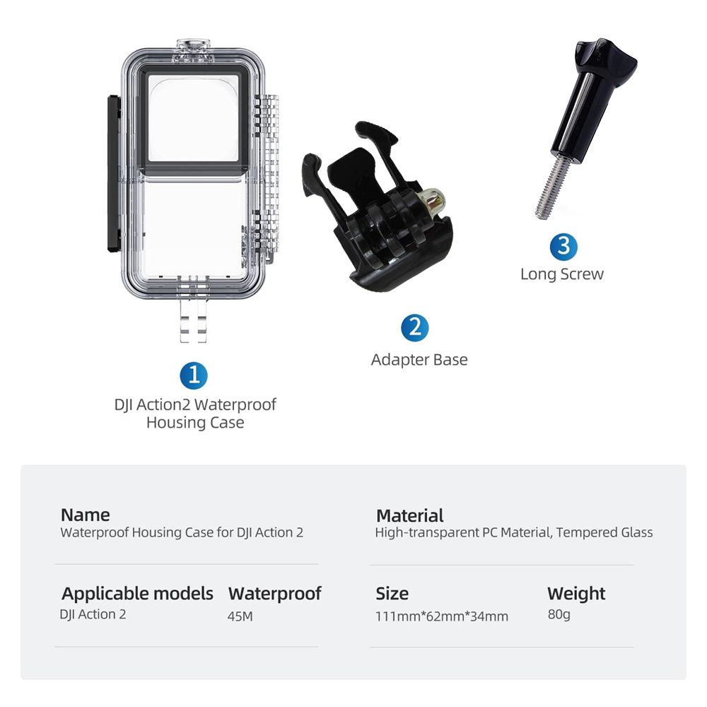 - Package Include: 1 x Waterproof Case for DJI Action 2, 1 x thread adapter, 1 x long screw.